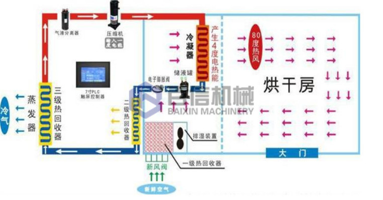 3、熱泵干燥裝置中的熱泵不僅具有烘干功能,還具有制冷功能和制熱功能,實現低溫加工和溫室供熱等多種功能。